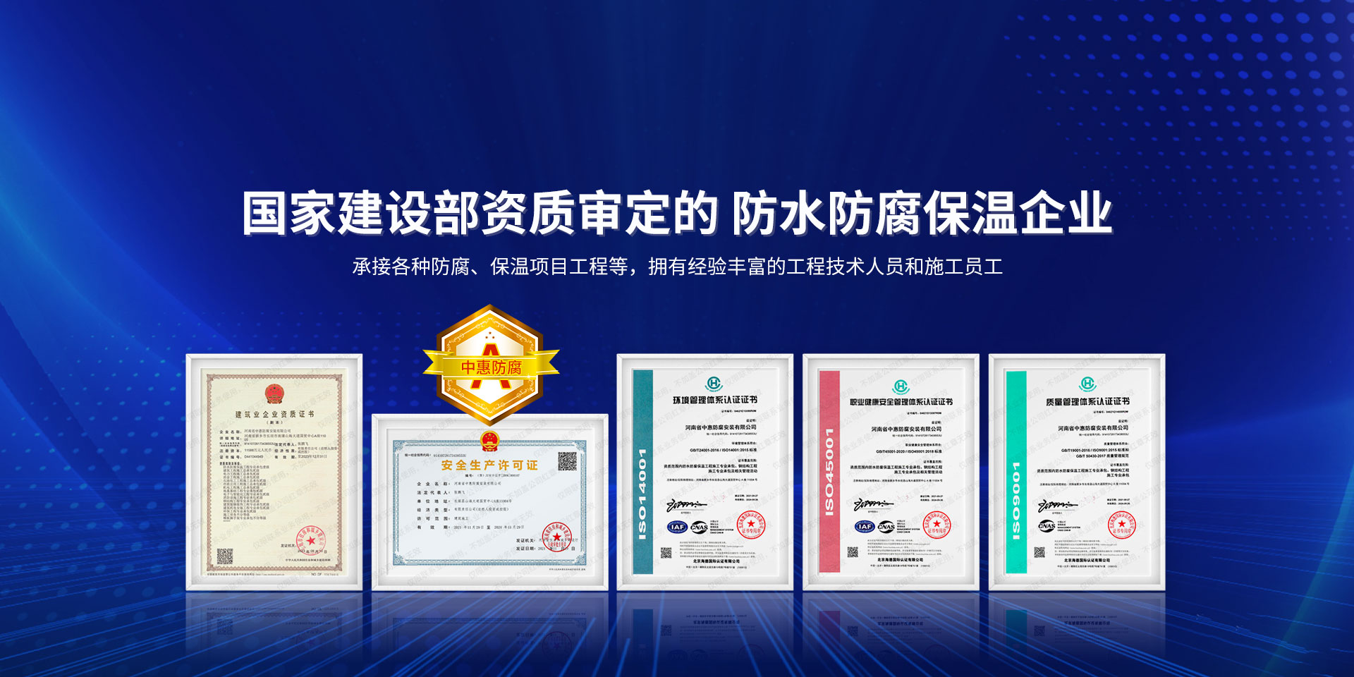公司經(jīng)營范圍:防水防腐保溫工程;消防設(shè)施工程;建筑裝修裝飾工程;建筑機電安裝工程;電力工程;建筑工程;石油化工工程;工業(yè)清洗工程;油罐清洗工程;鋼結(jié)構(gòu)工程;環(huán)保工程;模板腳手架工程;電纜防火封堵、防污閃噴涂、外墻外保溫工程;各類施工勞務(wù)作業(yè);設(shè)備維修、船舶鉚焊、涂裝;電力工程材料、建材、防水材料、防火材料、防腐保溫材料銷售,并相繼通過了GB/T19001-2008idtISO9001:2008GB/T50430-2007質(zhì)量管理體系認(rèn)證證書。GB/T24001-2004idtISO14001:2004環(huán)境管理體系認(rèn)證證書。GB/T28001-2011idtOHSAS18001:2007職業(yè)健康安全管理體系認(rèn)證證書。公司是中國防腐蝕于防護協(xié)會、中國施工企業(yè)管理協(xié)會、電力協(xié)會和中國鋼結(jié)構(gòu)防水協(xié)會會員單位。 公司的經(jīng)營業(yè)務(wù)涵蓋了石油、化工、電力、冶金、煤炭、船舶、國防、燃?xì)狻⑺h(huán)保、交通運輸、航空及國防軍工和輕紡市政等行業(yè)的防腐保溫絕熱設(shè)備。鋼結(jié)構(gòu)安裝、防火、防水、金屬噴鍍、聚脲噴繪、陰極保護、防滲透堵漏、玻璃鋼及各種磚版材料襯里、橡膠襯里、煙氣硫和耐酸溶劑腐蝕等工程施工。公司連續(xù)十年榮獲“省市先進施工企業(yè)”“安全生產(chǎn)先進單位”“重合同,守信用企業(yè)”和“AA***資質(zhì)企業(yè)”的稱號。2000年被命名為市級文明單位,2002年被國家工商行政管理局命名為“重合同,守信用的企業(yè)”、被中國工業(yè)防腐蝕技術(shù)協(xié)會命名為“防腐蝕企業(yè),能源節(jié)約及環(huán)境保護領(lǐng)域有豐富的經(jīng)驗和***的業(yè)績。工程一次交驗合格率100%。其中攀枝花鋼鐵公司煉鐵廠四號高爐及熱風(fēng)爐防腐工程、上海寶鋼公司煤氣柜防腐工程、撫順石油一廠裝置防腐項目、齊魯石化公司稀烴廠高塔防腐工程、吉林化學(xué)工業(yè)公司煉油廠油罐防腐工程、天津石化熱電廠六號爐頂棚聯(lián)絡(luò)管保溫工程、大慶油田(太倉)力神泵業(yè)工程、中國化學(xué)工程第十一建設(shè)工程、中原油田勘探局工程、中國石化銷售有限公司華北分部、魯皖輸油管道工程、貴州開磷息烽合成氨工程、陜西黃陵煤化工程、中國石油天然氣西部管道塔里木輸油工程、邯鋼集團邯寶鋼鐵公司煉鐵工程、德州供電工程、吉寶(南通)船廠工程,偃師華潤熱力工程、鄭州熱力總公司。 河南省中惠防腐安裝有限公司愿以豐富的施工經(jīng)驗,***的技術(shù),***的設(shè)備,***的管理,***的服務(wù),竭誠為國內(nèi)外廣大的用戶提供***滿意、******的工程作品。 我公司愿與國內(nèi)外同仁一道,團結(jié)協(xié)作,共同推進防腐蝕行業(yè)發(fā)展! 公司地址:河南省長垣縣建設(shè)路北段360號 固定電話:0373-8866488 郵編:453400 網(wǎng)址:http://www_zhff_com_cn.qingwaad.com